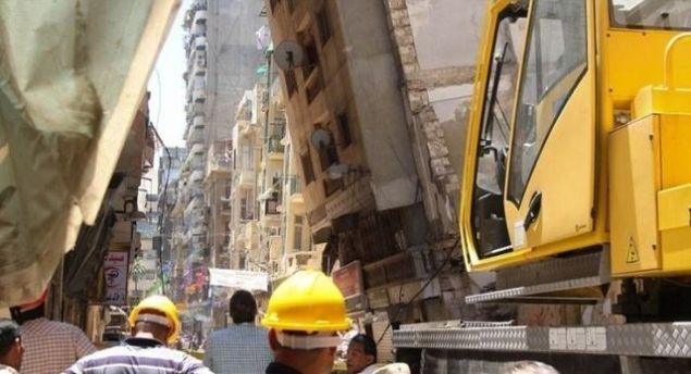 Mısır'ın İskenderiye kentinde, 13 katlı eski bir bina yıkılırken karşısında bulunan binaya çarptı.