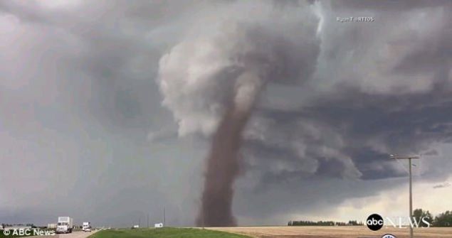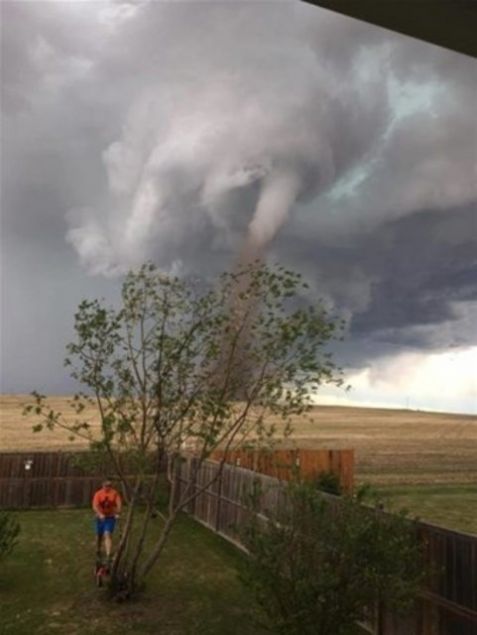 Fotoğraftaki bu adam arkasındaki tornado kasırgasına aldırış etmeden çimlerini biçmeye devam ediyor