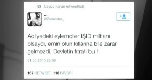 Çağlayan Adliyesi'ndeki terörist saldırı sonrası tanıdık isimlerden skandal tweetler art arda geldi. Bazıları söz konusu terör eylemine açık destek veren tweetler sosyal medyada büyük tepki aldı. İşte o tweetler