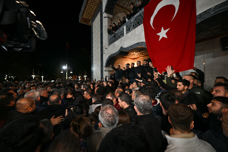 Cenazeye katılan bazı kişilerin yuhaladığı Özgür Özel, korumalar ve güvenlik eşliğinde caminin bahçesine girdi. Özel, burada da 'Özgür dışarı' sloganlarıyla karşılaştı.