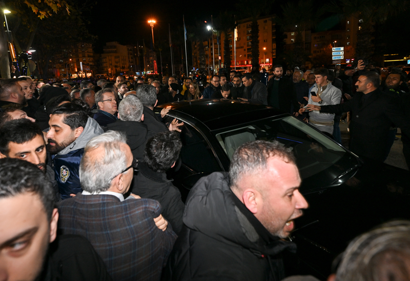 Polis ekipleri, kalabalığı sakinleştirmeye çalışırken, yuhalanan Özel, Vali Enver Ünlü'nün makam aracına binerek alandan ayrıldı.