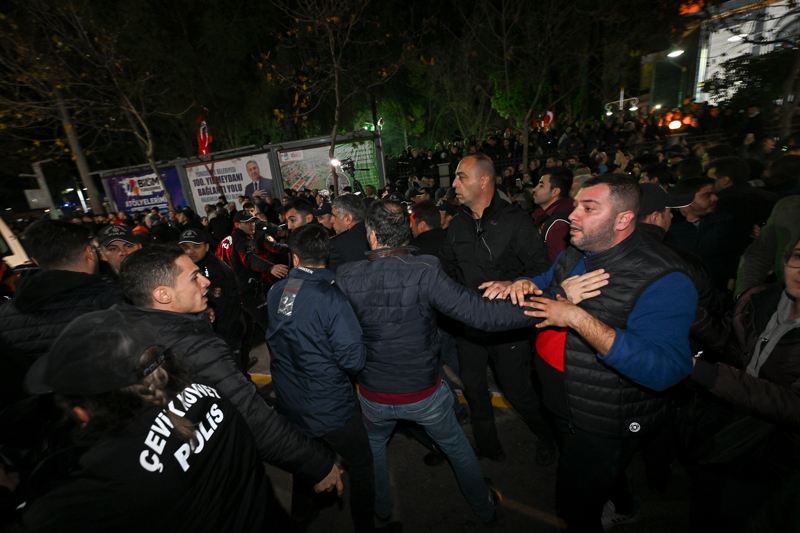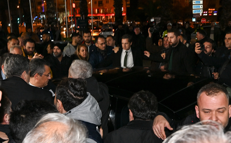 Özgür Özel ile Vali Ünlü'nün bulunduğu makam aracını yumruklayan kişilere, çevik kuvvet ekipleri müdahale etti.