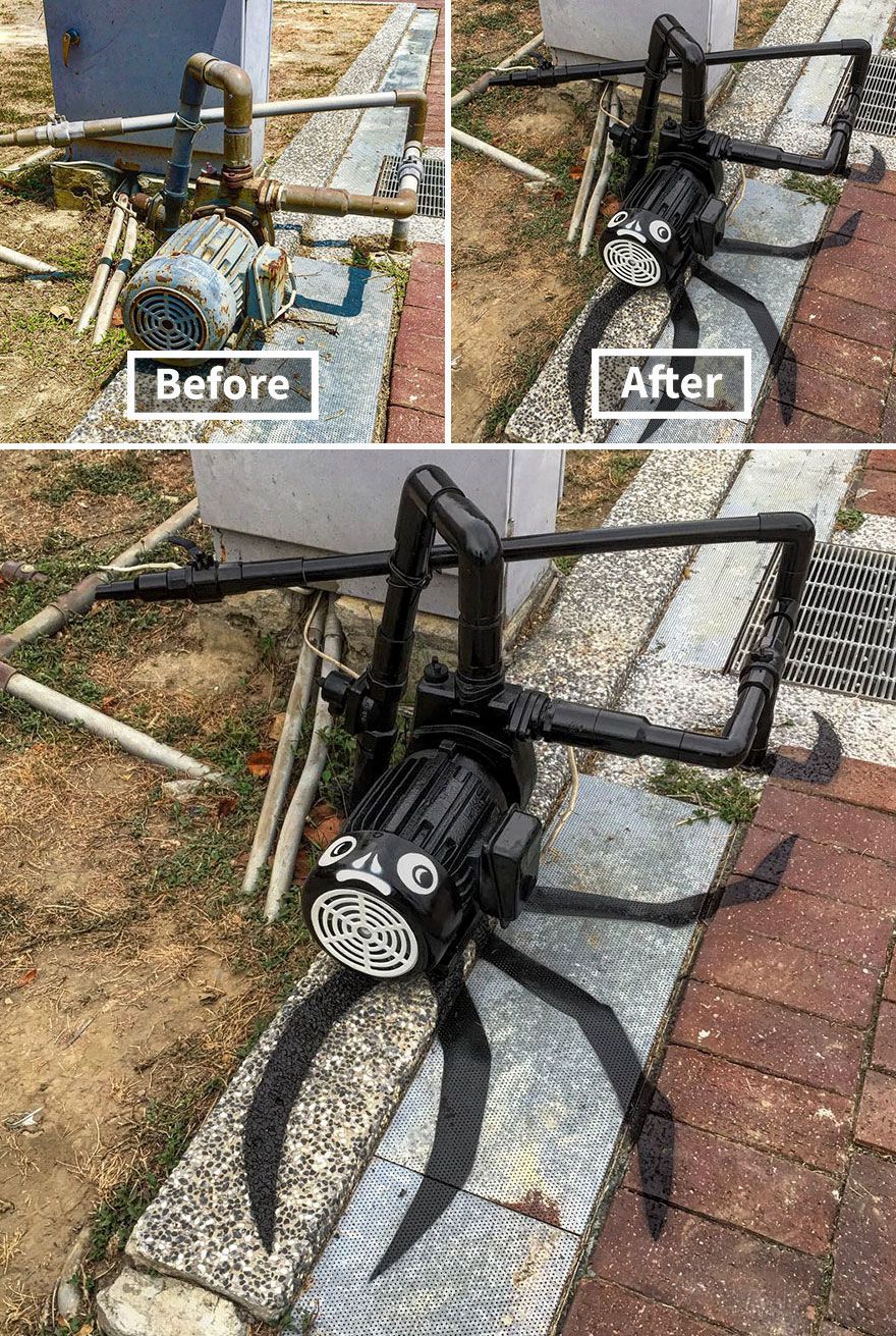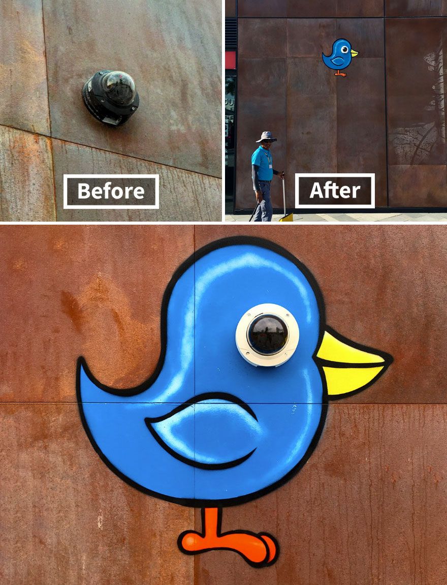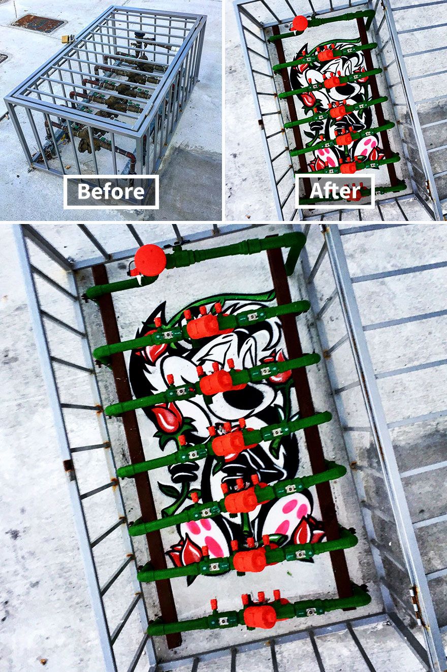 Kentsel peyzajdaki ortak nesneler üzerinde akıllı sokak sanatı yaratmak, sıkıcı çevresini mükemmel bir şekilde görünüm kazandırıyor.
