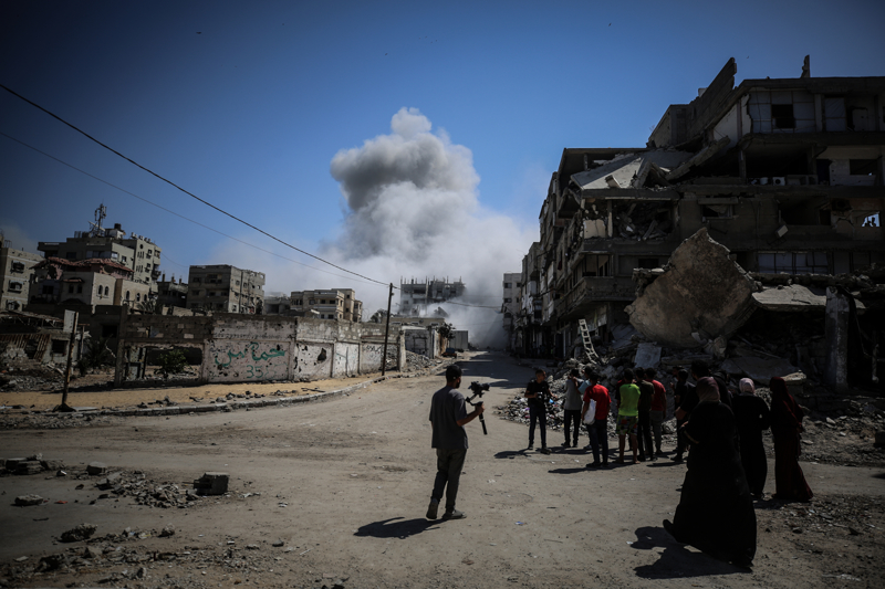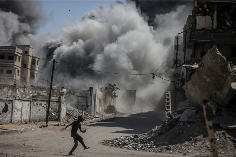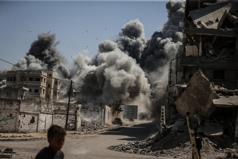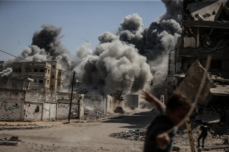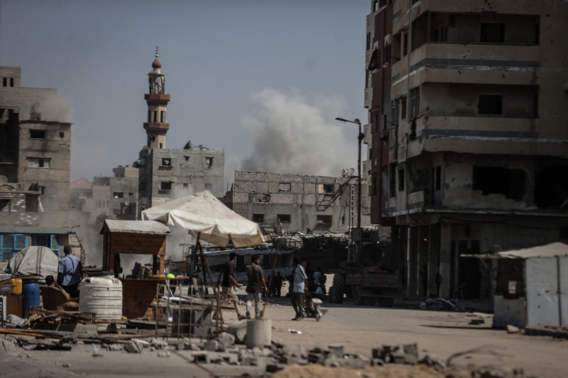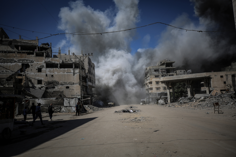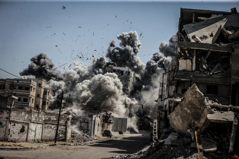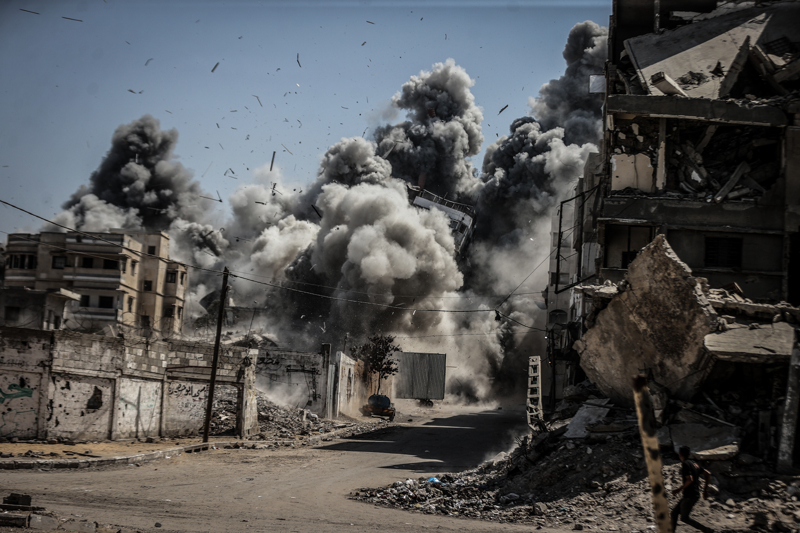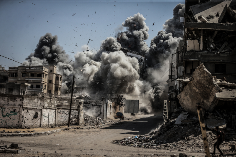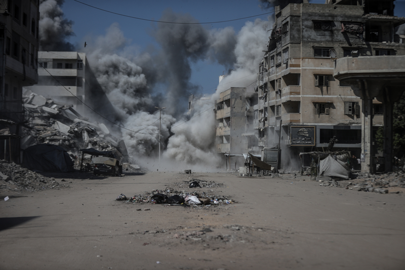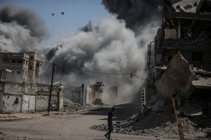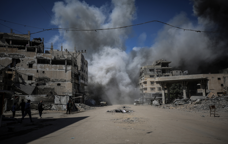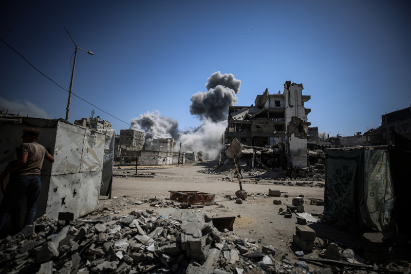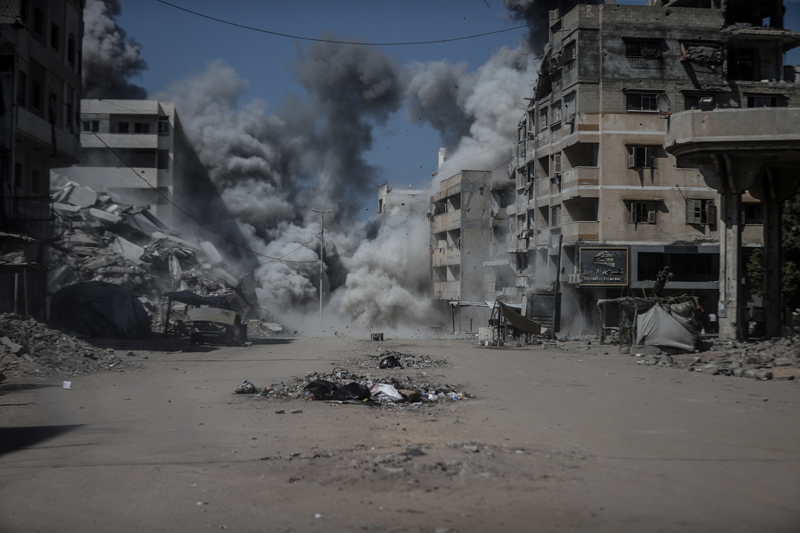 İsrail ordusunun Gazze kent merkezine düzenlediği saldırılar sonucu çok sayıda bina tamamen yıkıldı, bölgeden yoğun dumanlar yükseldi.