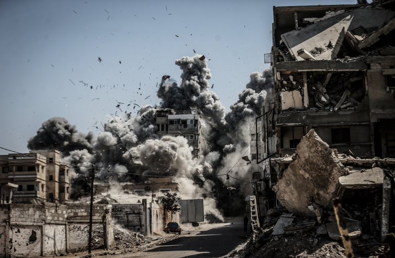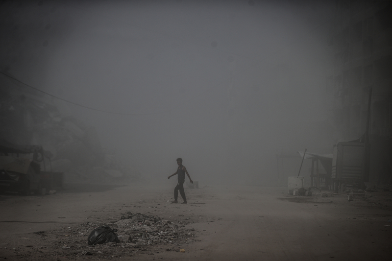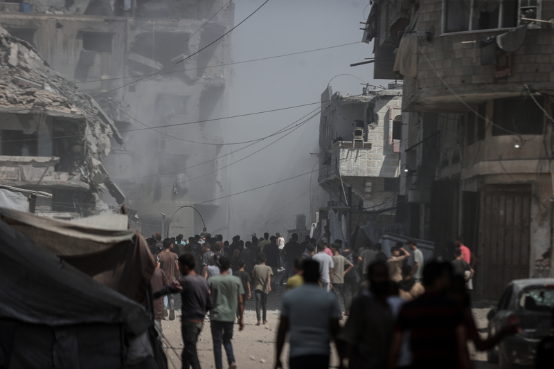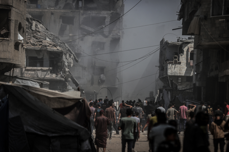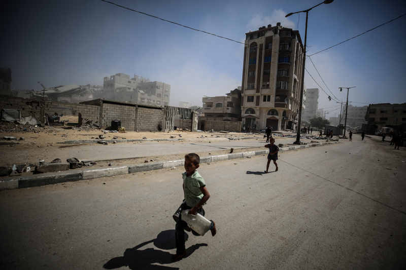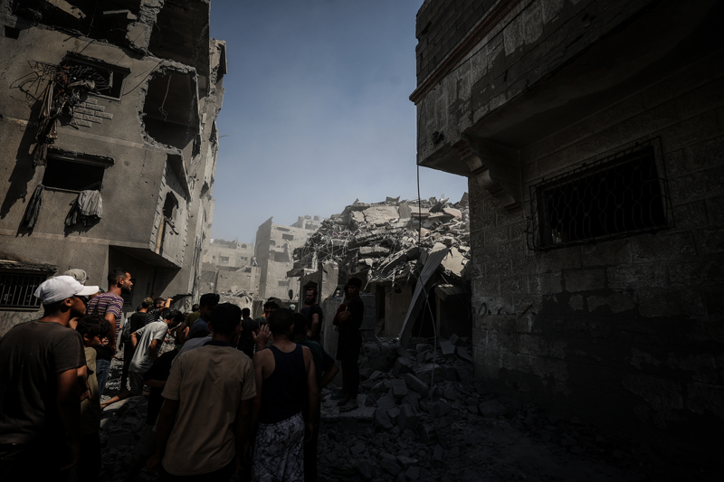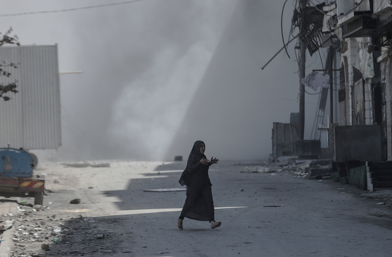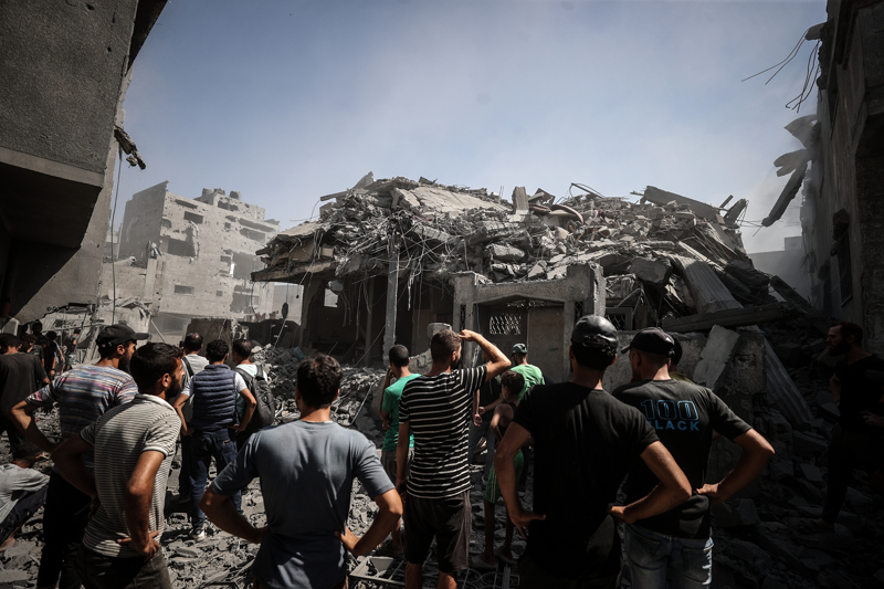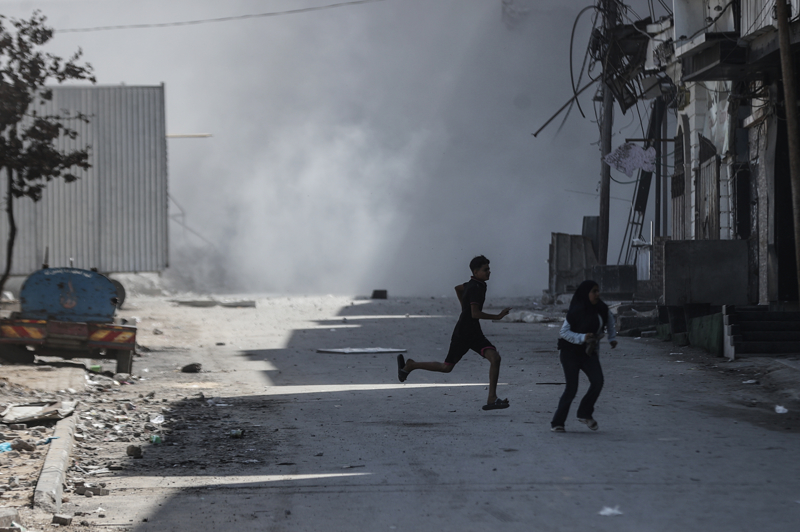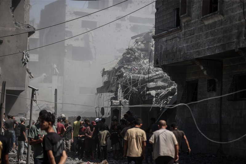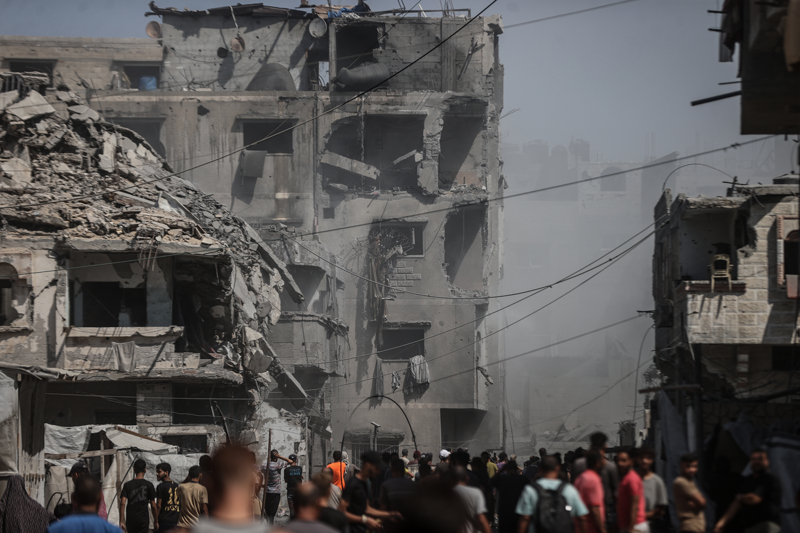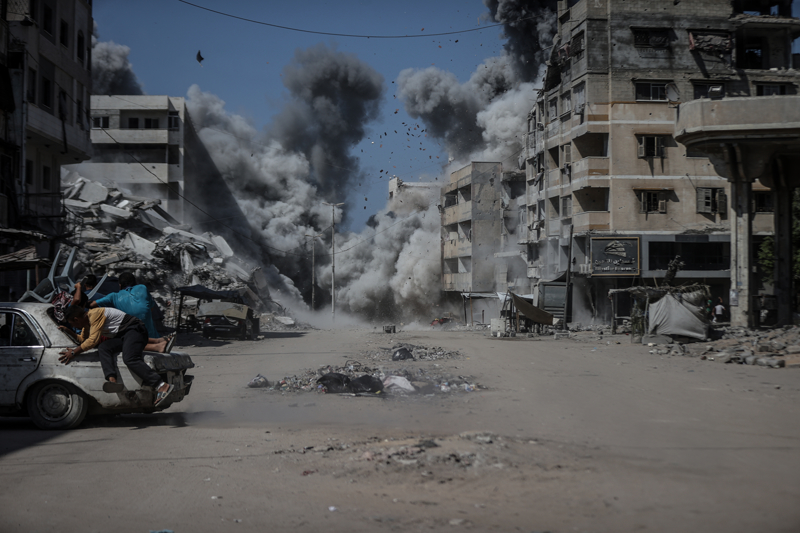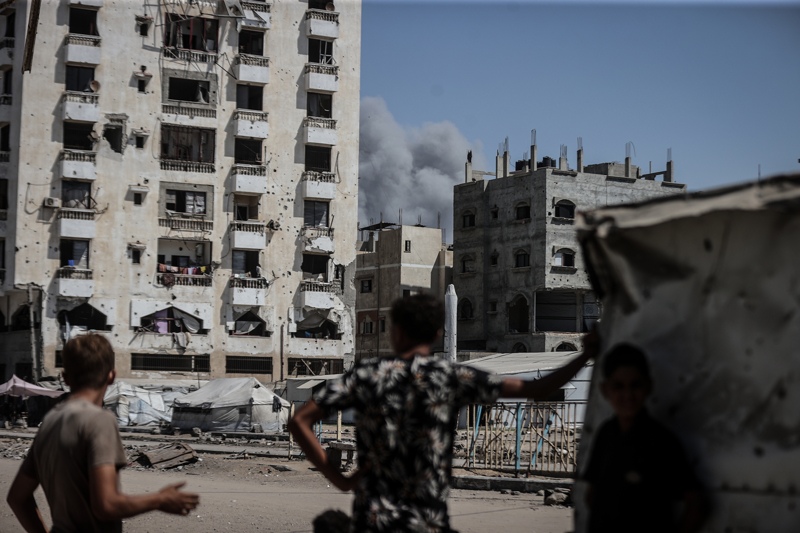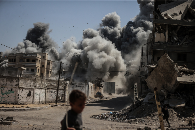 İsrail ordusunun Gazze kent merkezine düzenlediği saldırılar sonucu çok sayıda bina tamamen yıkıldı, bölgeden yoğun dumanlar yükseldi.
