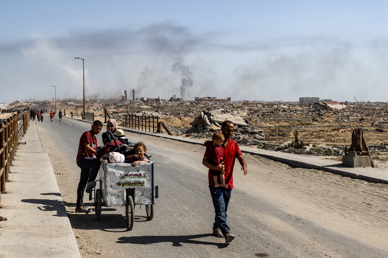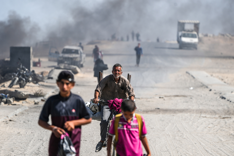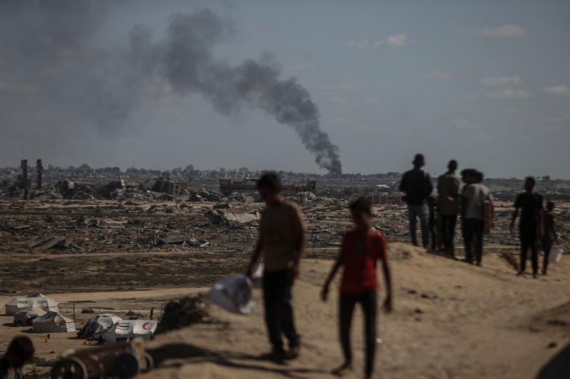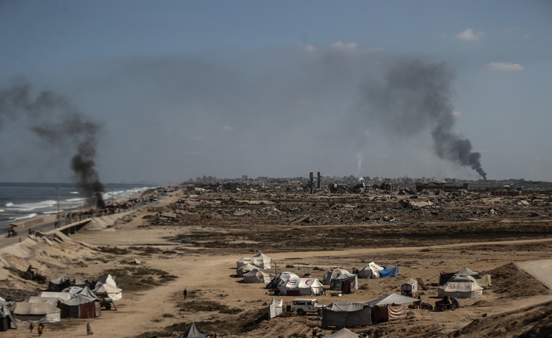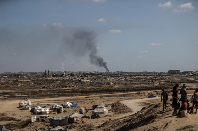 İsrail ordusunun Gazze Şeridi'nin kuzeyine yönelik yoğun saldırıları nedeniyle Filistinlilerin göçü sürüyor. İsrail'in saldırıları sonucu Gazze kentinden yükselen dumanlar, Deyr Belah'tan görüntülendi.