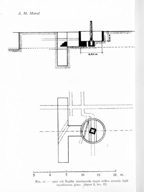 1927 yılında yapılan kazılarda bu sütunun altındaki su yolları tespit edilmiş ve çizimleri yapılmış.