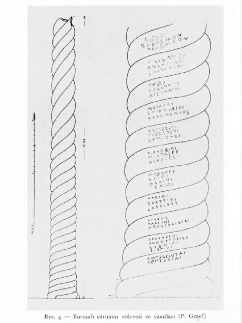 Başa dönersek, anıt dikildiği zaman Sparta kralı Pausanias anıtın üzerine adını yazdırır. Bu şehir devletlerinin yöneticilerini rahatsız eder.