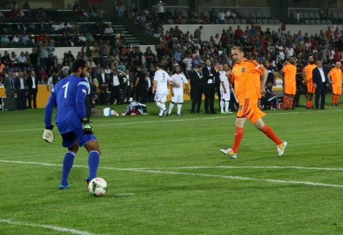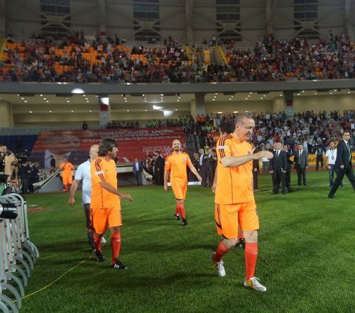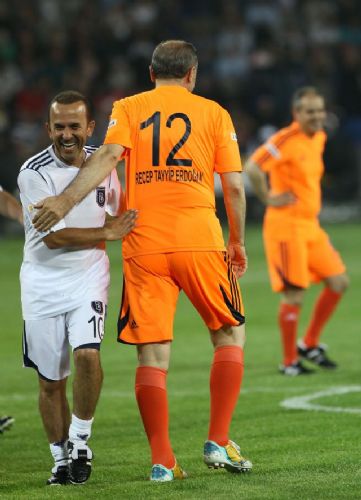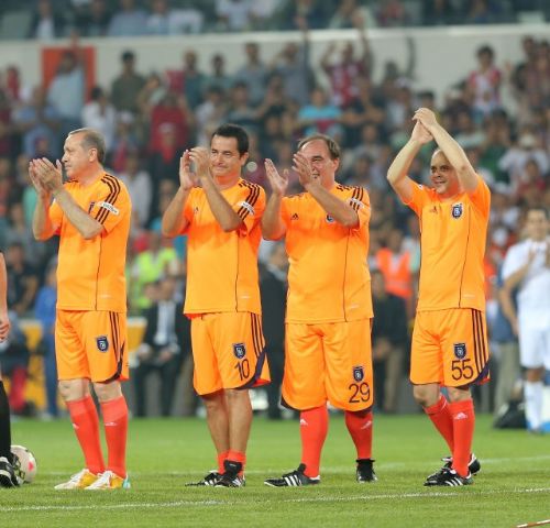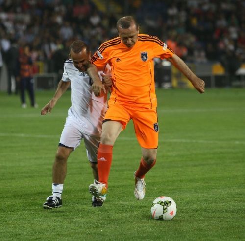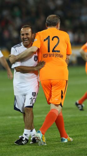 Başakşehir Stadı'nın açılışını yapan Başbakan Recep Tayyip Erdoğan, ünlü yıldızlarla gösteri maçına çıktı.