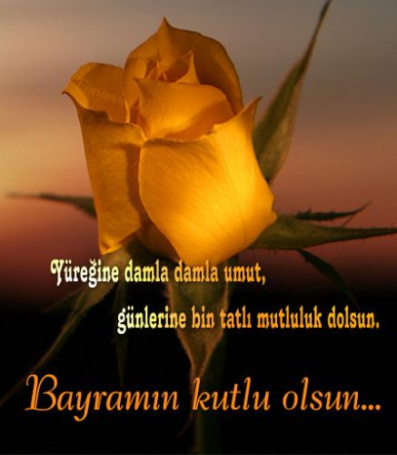 » Benim ömrümde ırmaklar vardır sularında hayallerimi yüzdürdüğüm, benim ömrümde sevdiklerim vardır bayramlar ayrı geçince üzüldüğüm. Bayramınız mübarek olsun! » İslamın nurlu güneşi kalbine dolsun, makamın cennet hz. Muhammed komşun olsun, günlerin mutluluk, gönlün saadetle dolsun bayramın mubarek olsun.
