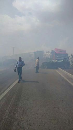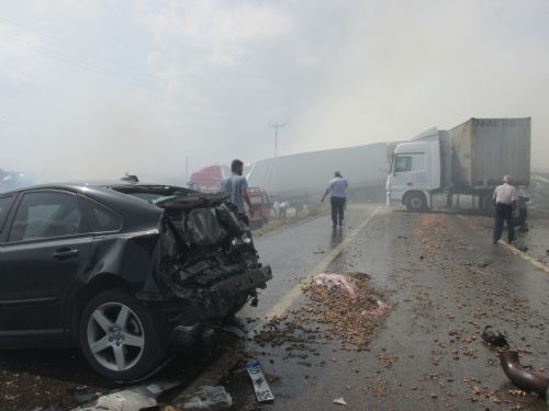 ADANA'nın Ceyhan İlçesi'nde yakılan anızın dumanının kapladığı karayolunda görüş uzaklığının sıfıra kadar düşmesi nedeniyle 16 aracın birbirine girdiği zincirleme trafik kazasında 2 kişi öldü, 8 kişi de yaralandı.