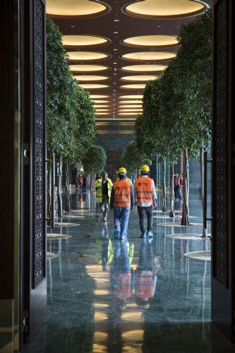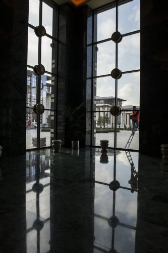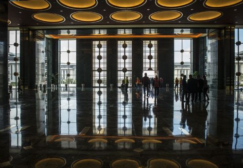 Beştepe'deki yeni Cumhurbaşkanlığı yerleşkesi, ilk kez 29 Ekim kutlamaları için kullanılacak. Tebrikleri Beştepe'de kabul edecek Cumhurbaşkanı recep Tayyip Erdoğan, akşam da eşi Emine Erdoğan ile Cumhuriyet Bayramı resepsiyonuna ev sahipliği yapacak. Resepsiyonun yapılacağı fuaye alanı ilk kez AA tarafından görüntülendi.