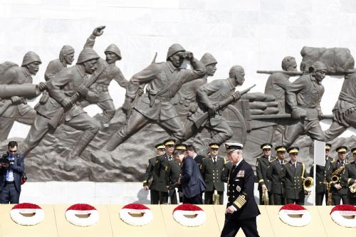 Törende önce Cumhurbaşkanı Erdoğan daha sonra İngiltere Veliaht Prensi Charles anıta çelenk bıraktı.