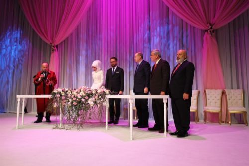 Kuran-ı Kerim tilaveti ve dua ile başlayan nikaha Cumhurbaşkanı Erdoğan ve eşi Emine Erdoğan, kızları Sümeyye Erdoğan ile Esra Albayrak, Enerji Bakanı Berat Albayrak, ESMEDYA Yönetim Kurulu Başkanı Ethem Sancak ve eşi Nurten Sancak, ESMEDYA Yönetim Kurulu Üyesi Murat Sancak, Star Gazetesi Genel Yayın Yönetmeni Nuh Albayrak, Genel Yayın Koordinatörü Yücel Koç, Yazı İşleri Müdürü Filiz Güler, 24 TV Genel Yayın Yönetmeni Murat Çiçek, Akşam Gazetesi Genel Yayın Yönetmeni Murat Kelkitlioğlu, Cumhurbaşkanı Erdoğan’ın Başdanışmanı Yiğit Bulut, Cumhurbaşkanlığı basın danışmanlarından Saadet Oruç ile çok sayıda vekil, siyasetçi ile gazeteci katıldı.