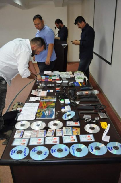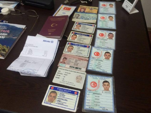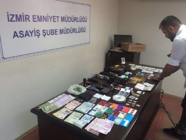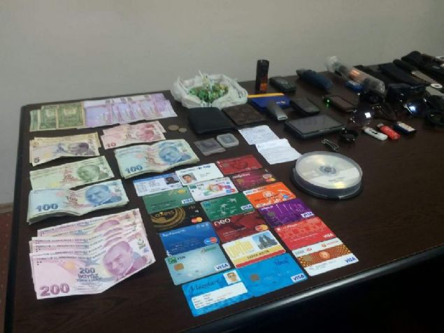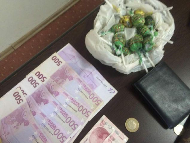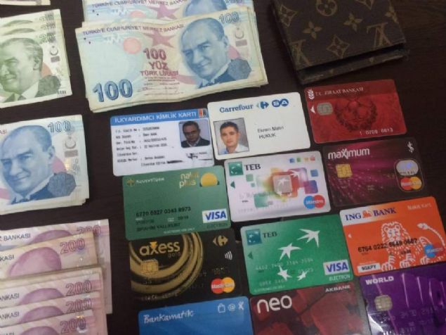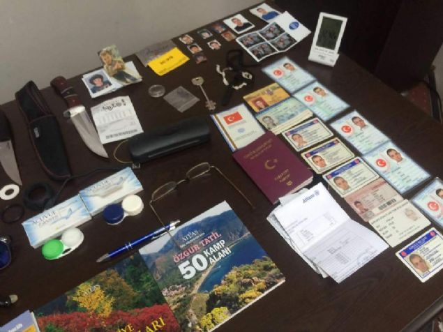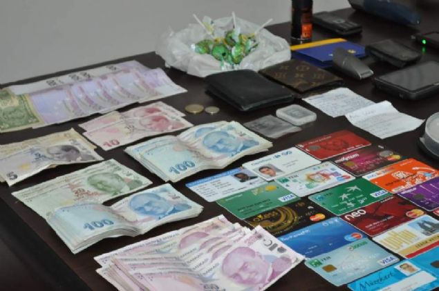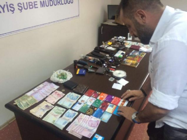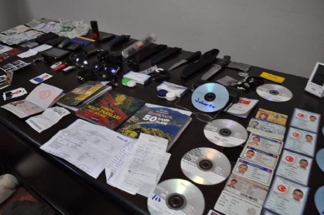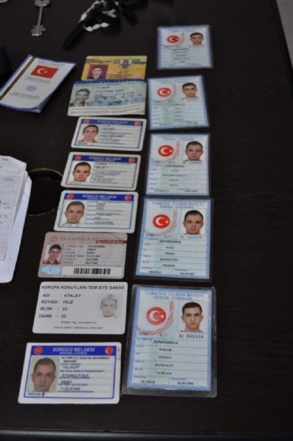 İlçe emniyet müdürülüğüne getirilen Filiz'in üzerinden 10 bin lira, 3 bin 500 avro, 2 adet rambo tipi tabir edilen bıçak, 4 adet sahte nüfus cüzdanı, 3 adet sahte ehliyet çıktı.