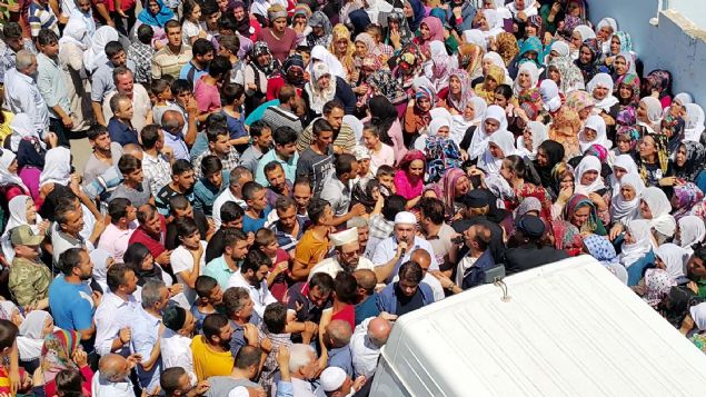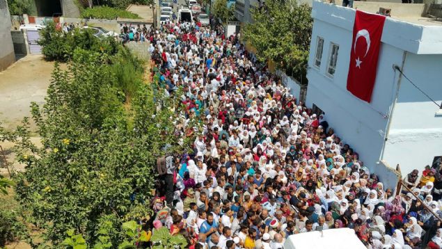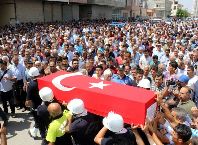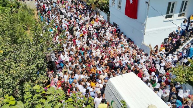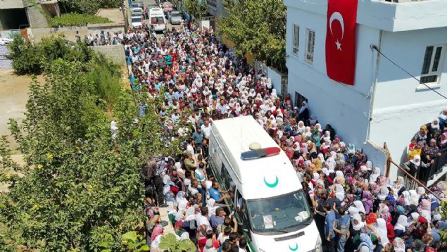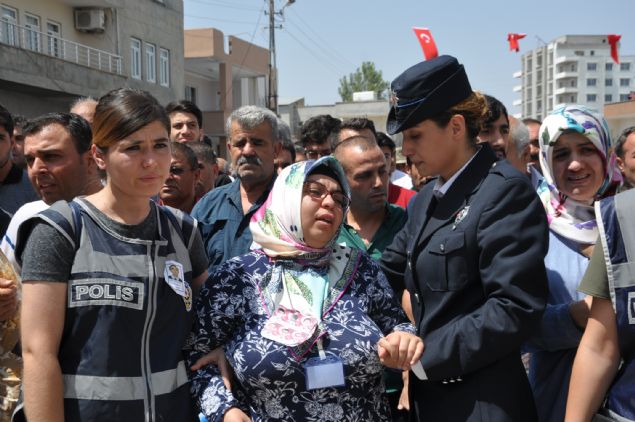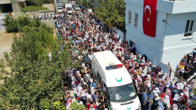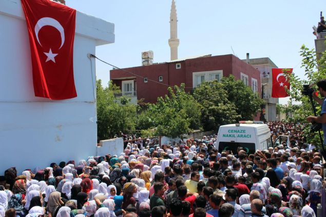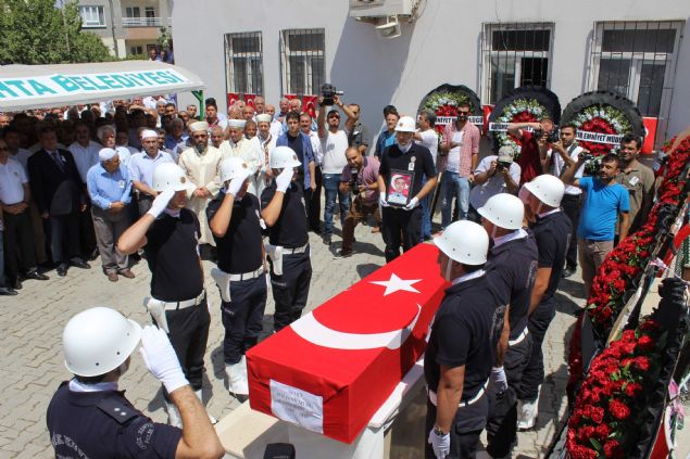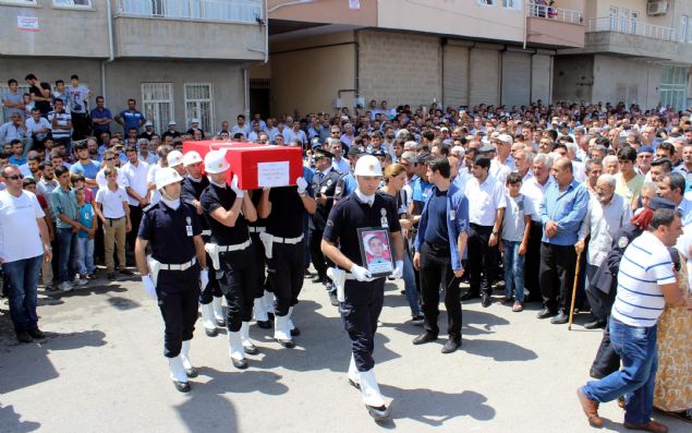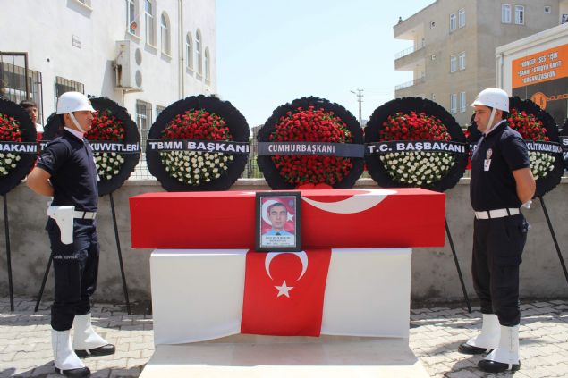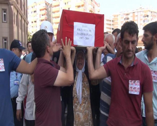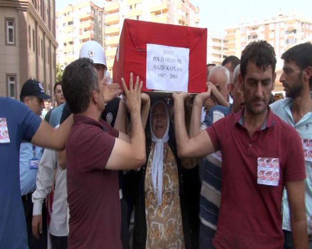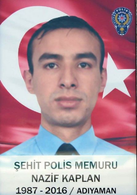 Diyabakır'da, PKK'lı teröristlerin bomba yüklü araçla düzenlediği saldırıda şehit olan polis memuru 27 yaşındaki Nazif Kaplan, memleketi Adıyaman'ın Kahta İlçesi'nde 10 bin kişi tarafından gözyaşları arasında son yolculuğuna uğurlandı.