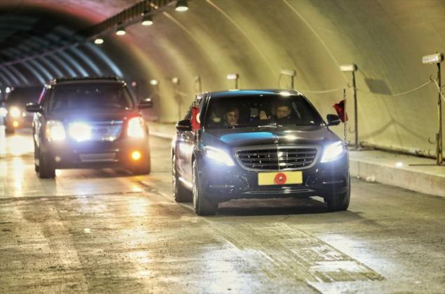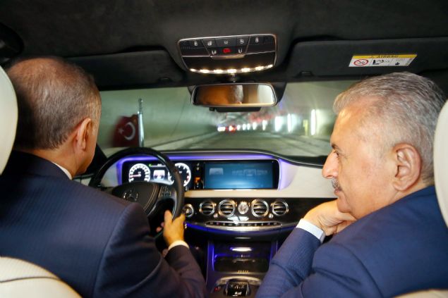 Cumhurbaşkanı recep Tayyip Erdoğan, Avrasya tünelinin çalışmalarını yerinde görmek için direksiyon başına geçti