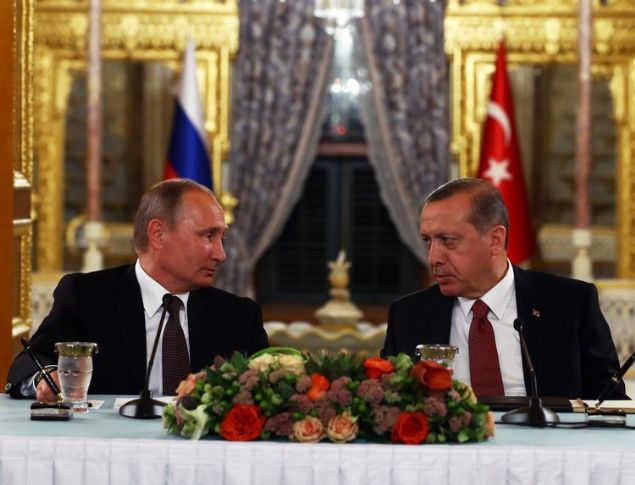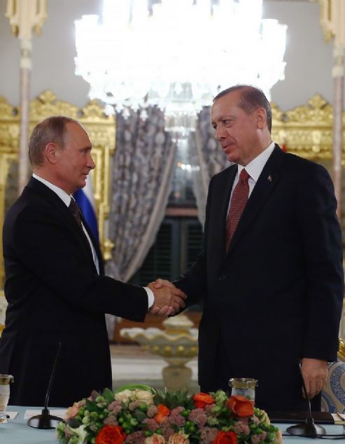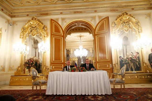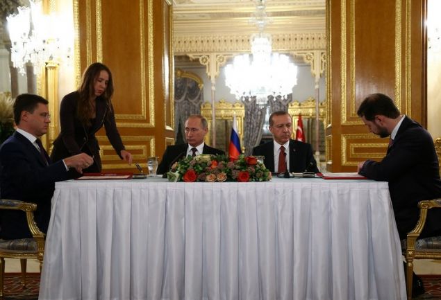 Cumhurbaşkanı Erdoğan ile Rusya Devlet Başkanı Vladimir Putin, Mabeyn Köşkü'nde bir araya geldi. Liderlerin ortak açıklaması öncesinde iki ülke arasındaki Türk Akımı Projesi'ne imzalar atıldı. Anlaşmayla Rus gazı Türkiye'ye taşınacak.