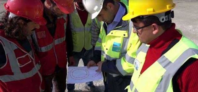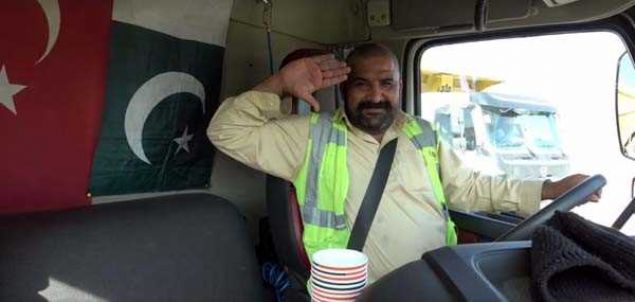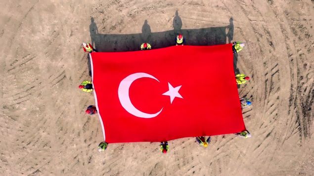 İşçiler, kamyonlarla yazılan “93” yazısının ortasında Türk bayrağı açtı.