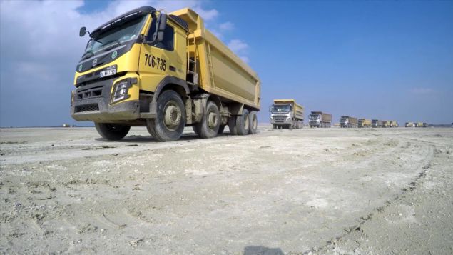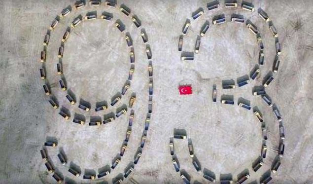 Kamyonlarla yazılan “93” yazısı havadan da görüntülendi.