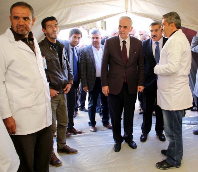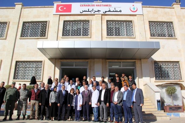Burada çocuklar ile yakından ilgilenen heyet, onlara çeşitli kırtasiye malzemesi hediye etti, hatıra fotoğrafı çektirdi. Velilerle sohbet eden ve onların sorunlarını not alan heyet daha sonra Türkiye Cumhuriyeti Sağlık Bakanlığı tarafından kurulan Cerablus Hastanesine geçti.