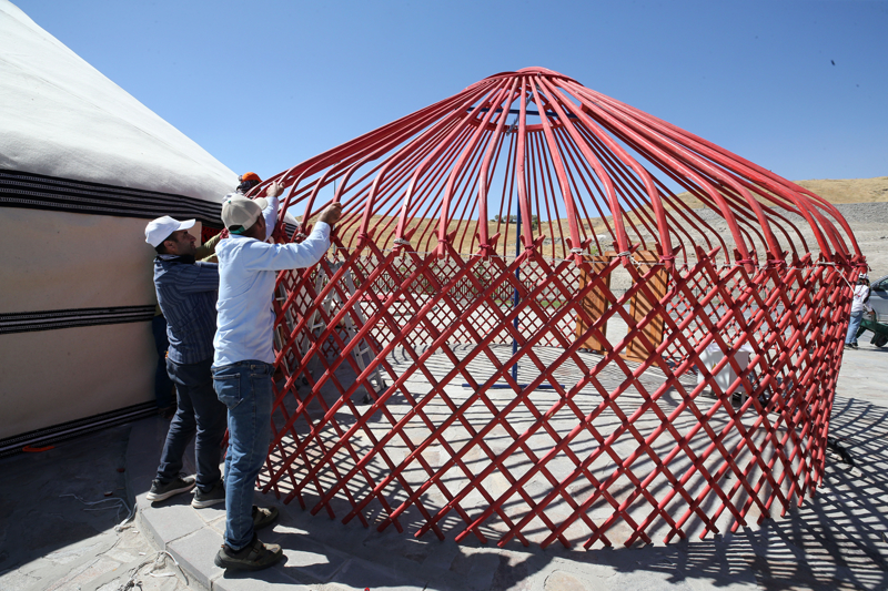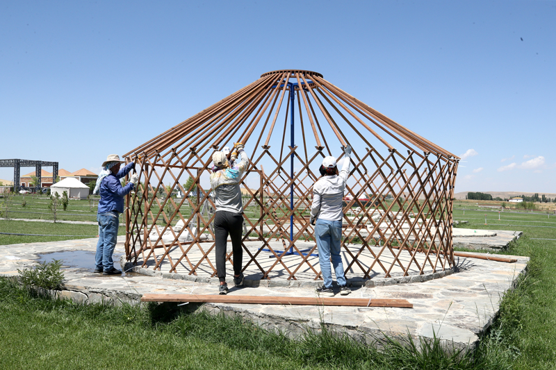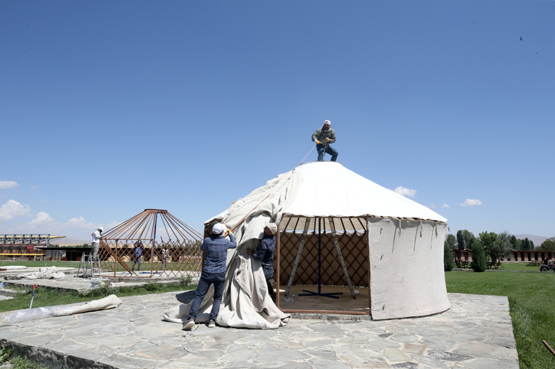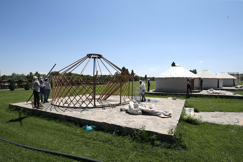 Üzerlerinde ve iç kısımlarında Selçuklu motiflerinin yer aldığı keçeden yapılmış Han Otağı ile tematik çadırların kurulduğu alanda, etkinlikler 22 Ağustos'ta başlayacak.