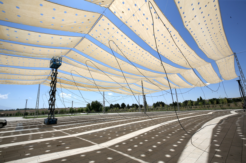 Malazgirt ilçesinde 26 Ağustos'ta düzenlenecek ve Cumhurbaşkanı Recep Tayyip Erdoğan'ın vatandaşlara hitap etmesi beklenen etkinlik için Malazgirt Meydan Muharebesi Tarihi Milli Parkı'nda gölgelendirme, serinletme sistemi, han otağı ve tematik çadırlar kuruldu, peyzaj çalışmasında sona gelindi.