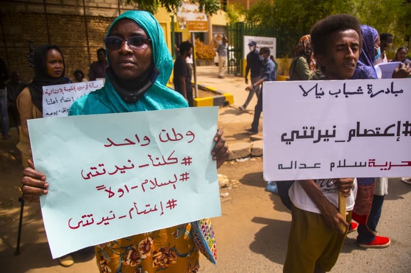 Bölge halkına destek amacıyla başkent Hartum’daki Bakanlar Kurulu binası önünde toplanan göstericiler, ellerinde 'Savaşa hayır. Hepimiz Nirtitiyiz. Askeri bölge komutanı istifa et.' yazılı dövizler taşıdı.