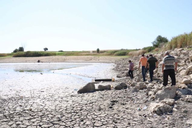 İlçeye bağlı Oruçlu köyündeki sulama göletinden kısa bir süre önce çiftçiler tarafından tarım alanlarının sulanması amacıyla su çekildi.