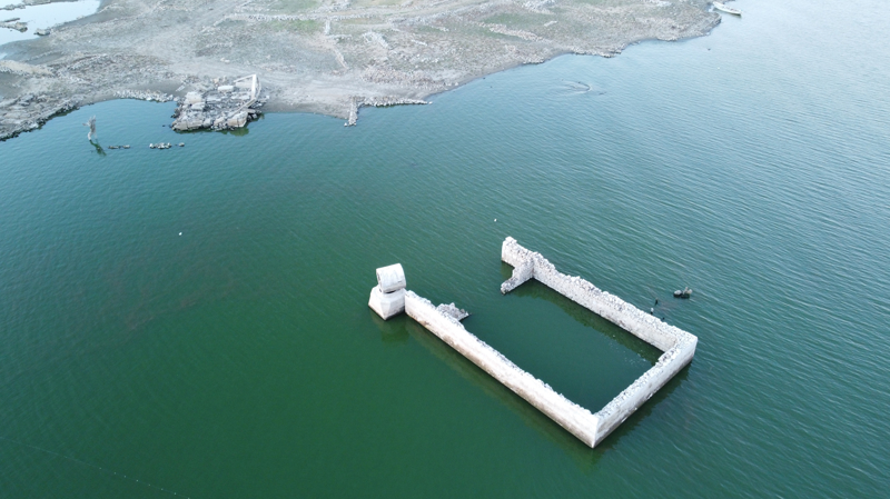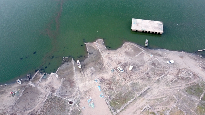 Sular çekildi, tarihi yapılar gün yüzüne çıktı