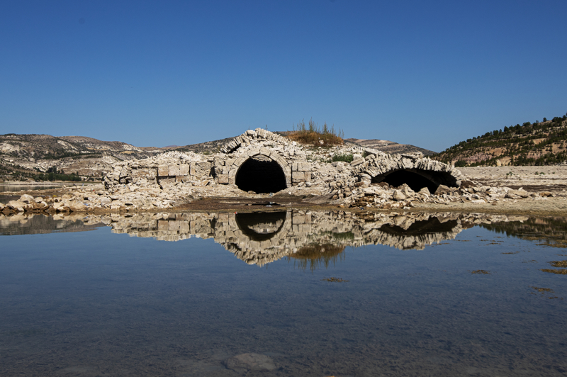 Barajda kuraklık nedeniyle su seviyesinin azalmasıyla, 822 yıllık Selçuklu dönemi Altınapa Hanı gün yüzüne çıktı.