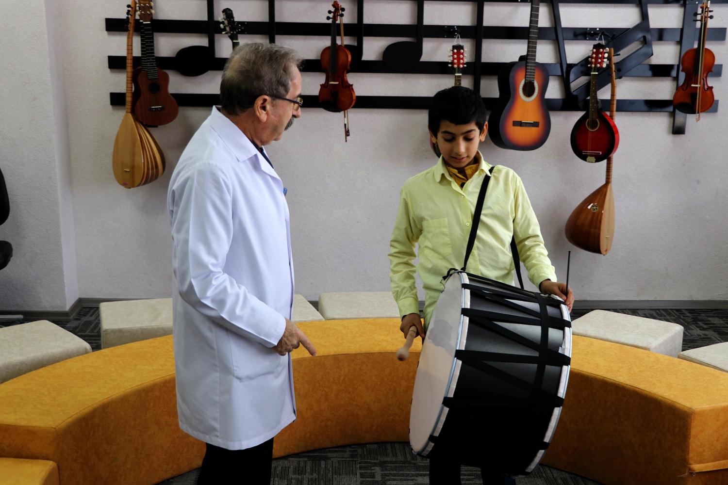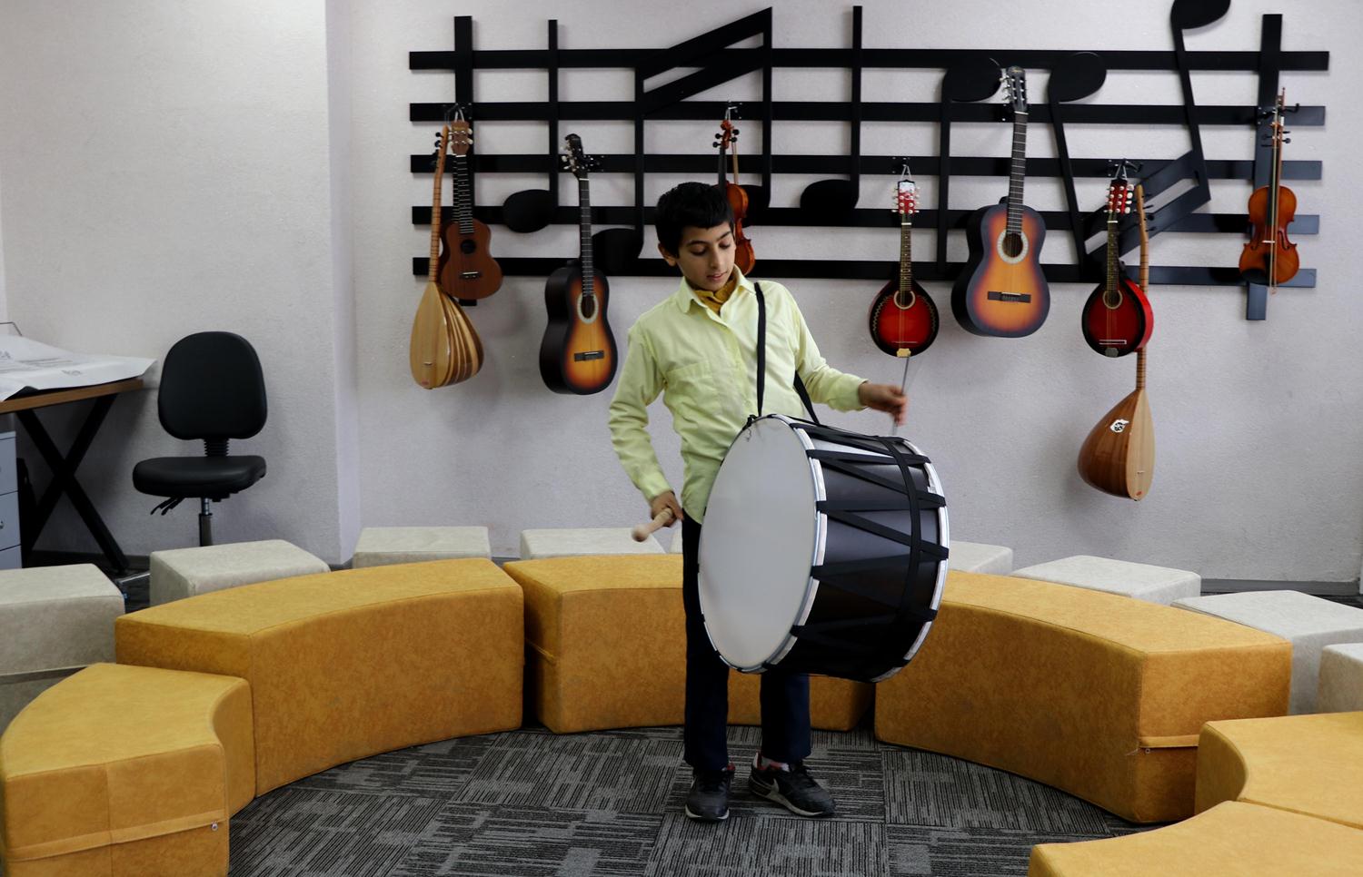 "Konservatuvarda eğitim almayı istiyorum" Okulun 7. sınıf öğrencisi Egemen Ertan da davulu 3-4 sene önce düğünde gördüğünü o günden bu yana bidon ve masada ritim tuttuğunu anlattı.
