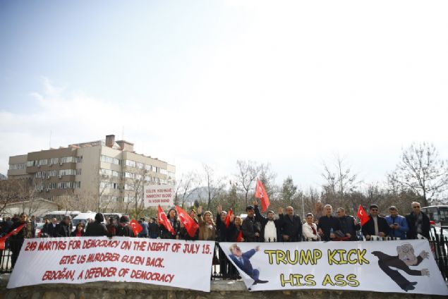 Duruşma öncesi darbecileri protesto etmek için duruşma salonunun karşısında kendilerine yer ayrılan vatandaşlar ellerinde pankartlar ile FETÖ’nün suikast timini protesto etti. Vatandaşlar ellerindeki pankartlarda ‘Game Over FETÖ’, ‘We Know The Enemy’, ‘Hepiniz vatan hainisiniz’, ‘Öleceksek Vatan İçin Ölelim’, ‘İdam İsteriz’, ‘Vur vur inlesin, Pensilvanya Dinlesin’, ‘Asımın nesli darbecileri yendi’, ‘Paralelin kökünü kazıyacağız’, ‘Millet eğilmez, Türkiye yenilmez’ sloganları yer aldı.