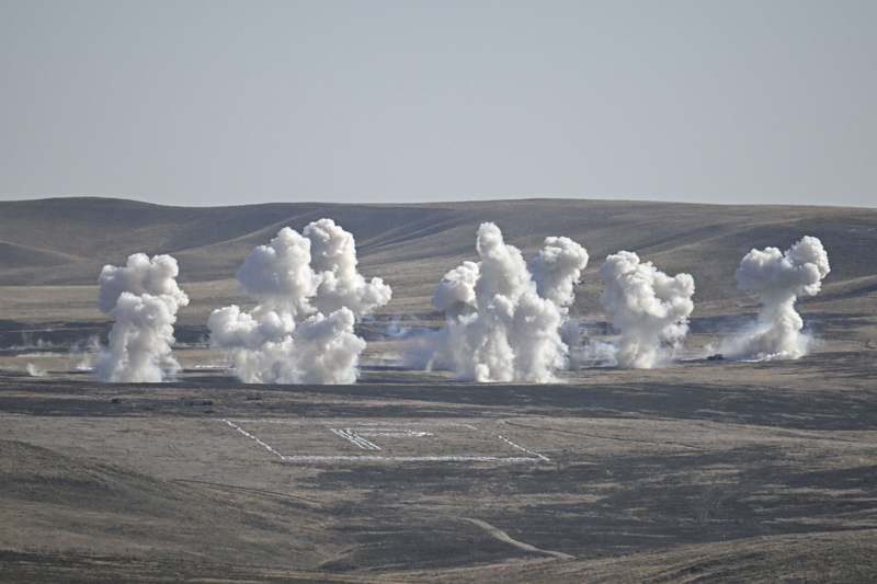 Faaliyet sahasına havadan taşınan topların hedeflere yönelik yaptığı 'görerek atışın' sonrasında 12 obüs tarafından tesir atışı gerçekleştirildi.