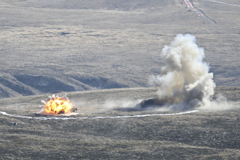 Daha sonra hareket halindeki tank takımı, önce duran, ardından hareketli hedefleri ateş altına aldı. Sonrasında zırhlı muharebe araçlarındaki toplar hedefleri vurdu. Hedeflerin tam isabetle imha edildiği atışları, tanksavar atışları izledi.