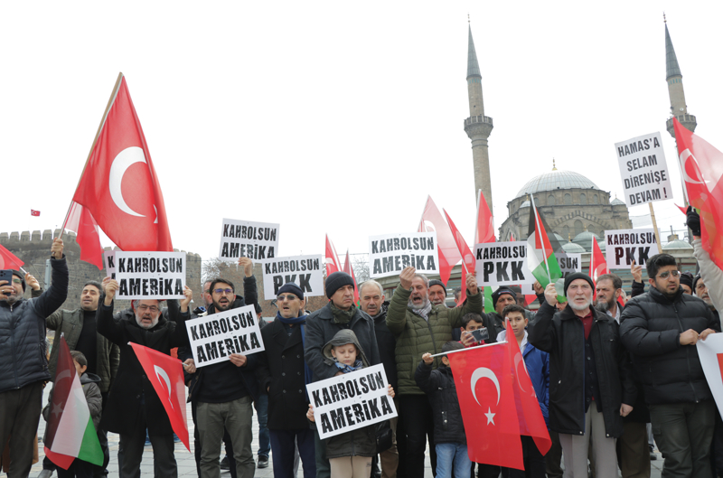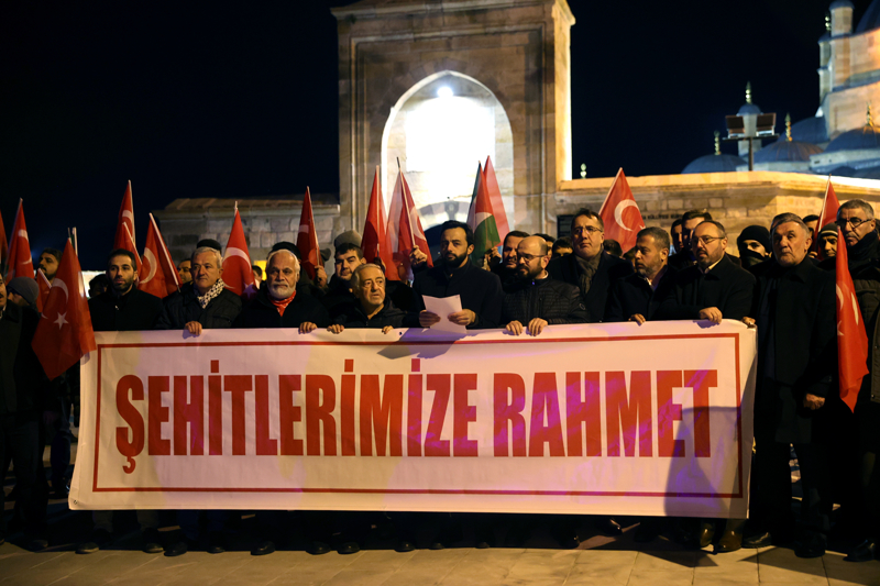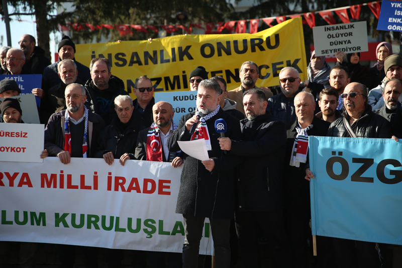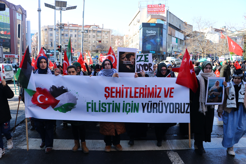 Kayseri Cumhuriyet Meydanı'nda kurulu Filistin çadırı önünde bir araya gelen Filistin'le Dayanışma Platformu üyeleri, Türk ve Filistin bayrağı taşıdı, 'Kahrolsun PKK, İsrail ve ABD', 'Şehitler ölmez, vatan bölünmez' sloganı attı.
