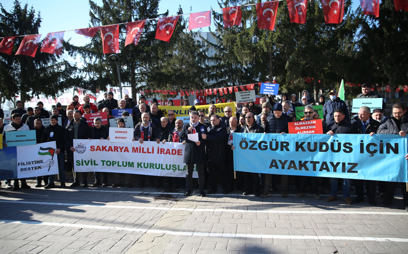 Sakarya'da terör ve İsrail'in Gazze'ye yönelik saldırıları kınandı. Adapazarı Kültür Merkezi önünde toplanan Milli İrade Sivil Toplum Kuruluşları temsilcileri, ellerinde Türk ve Filistin bayrakları ile dövizler taşıdı