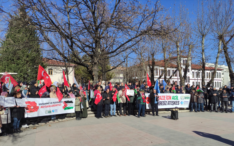Çankırı İHH İnsani Yardım Derneğince, 'Teröre lanet ve Gazze için acil ateşkes çağrısı' etkinliği gerçekleştirildi.