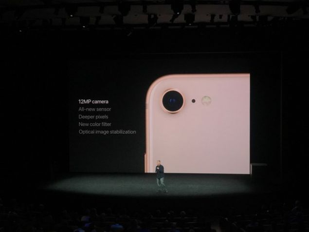 12 MP'lik arka kamera da yeni renk filtresi de yer alıyor. iPhone 8 Plus'ta ise çifte 12 MP kamera yer alıyor.