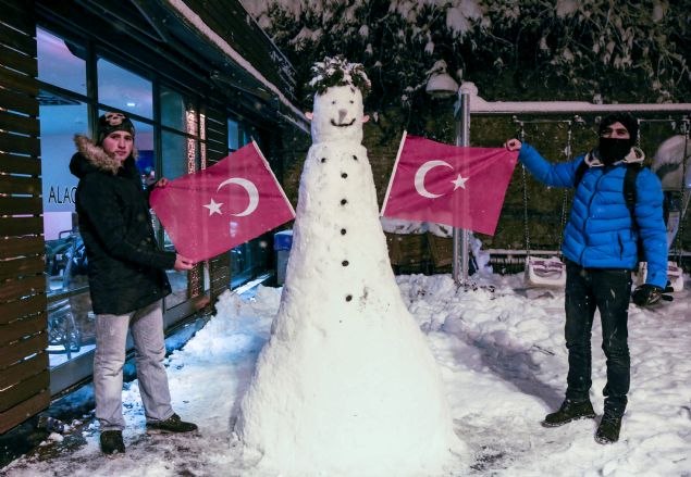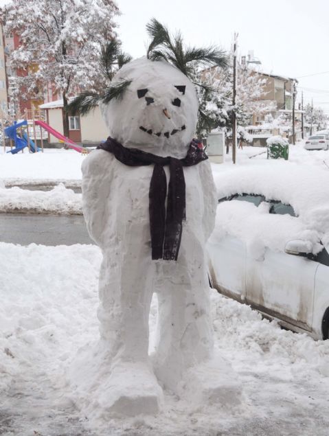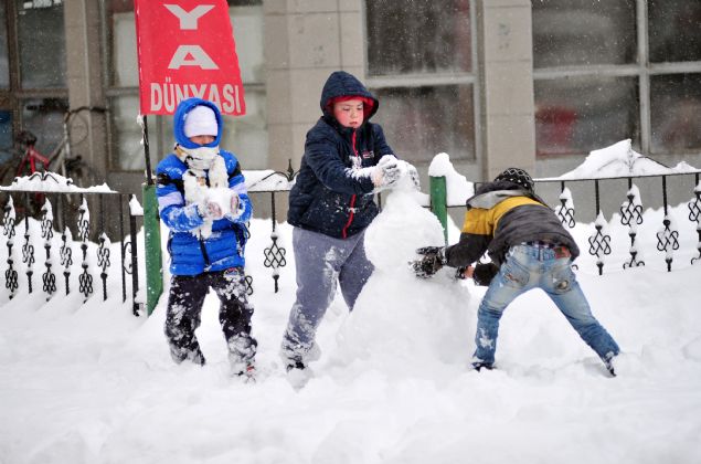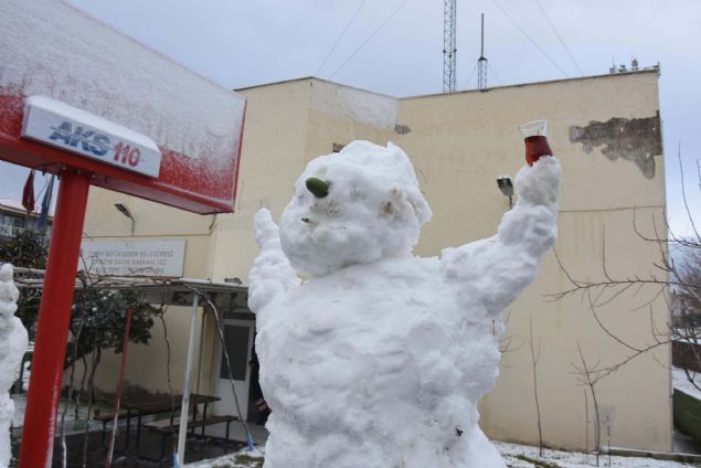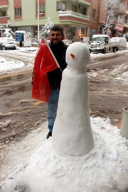 Türkiye'yi etkisi altına alan kar yağışı yurdun birçok yerinden sokaklara dökülen insanlar kardan adam yaparak eğlendi.