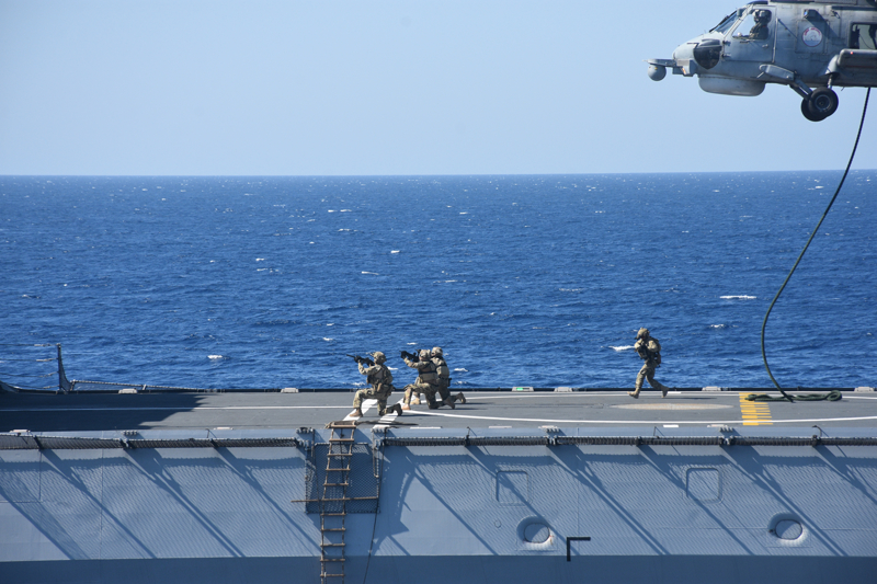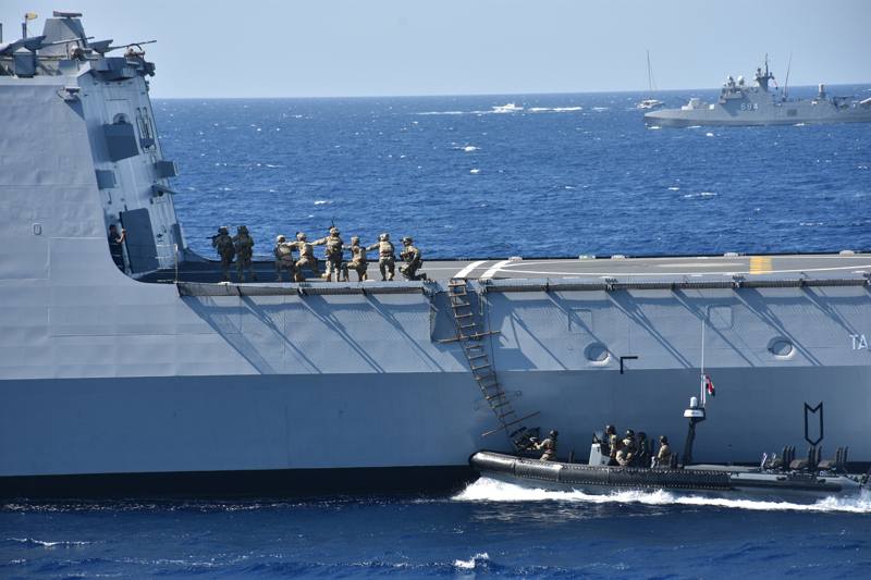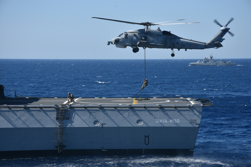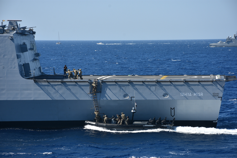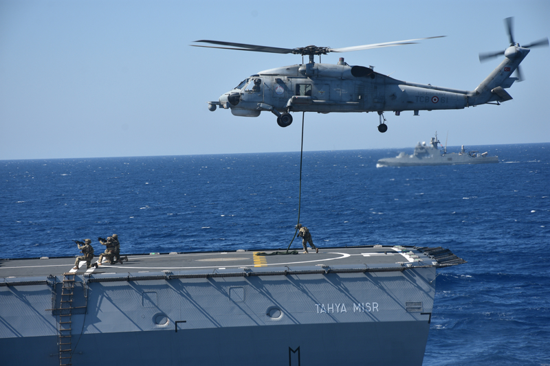 Türkiye-Mısır Dostluk Denizi-2025 (Bahr El Sadaka) Tatbikatı'nın seçkin gözlemci günü safhası Muğla'da gerçekleştirildi. Akdeniz'de icra edilen faaliyet kapsamında, senaryo gereği 'ENS Tahya' fırkateyninden alınan ihbar üzerine, gemiye helikopterden halatlarla Türk askeri personelin inişi sağlandı.