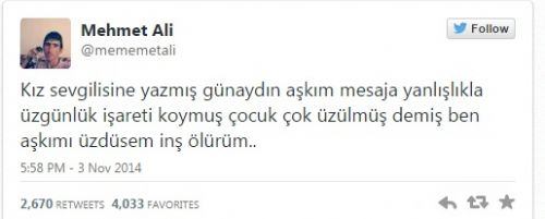 İşte twitter fenomenlerinden Mehmetali'nin en çok paylaşılan ve beğenilen tweetleri...