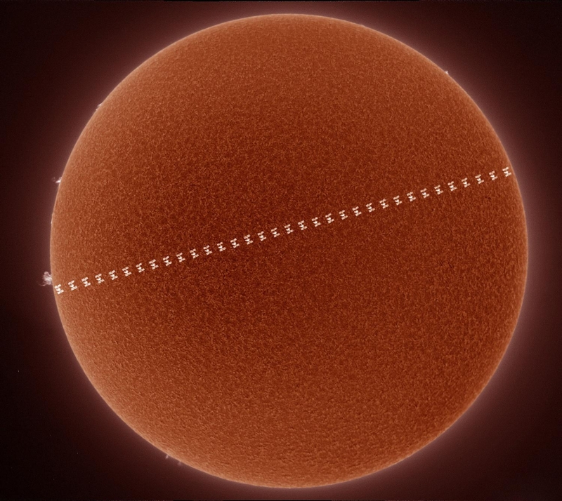 DÜNYACA ünlü Türk astrofotoğrafçı Mehmet Ergün (40), Uluslararası Uzay İstasyonu'nun (ISS) Güneş'in önünden geçişini görüntülemeyi başardı. Ergün, 1 saniyeden az süren geçiş sırasında çektiği 34 kare fotoğraftan timelapse (zaman atlamalı) video oluşturdu.