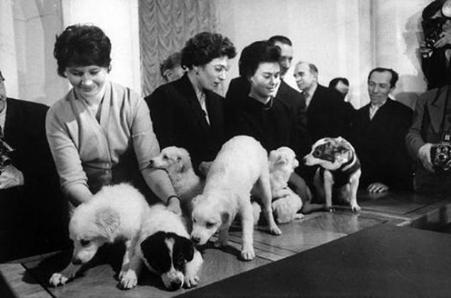 Uzay köpekleri Fotoğrafta SSCB Bilimler Akademisi’ndeki bakıcılar uzay programındaki köpekleri tanıtırken görülüyor.