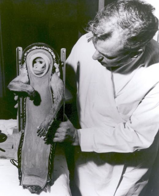 Able ve Baker 1959 yılında çekilen fotoğrafın soldaki 3.2 kilo ağırlığındaki makak maymunu Able, sağdaki ise Peru’dan getirilen 5 kilo ağırlığındaki sincap maymunu Baker.