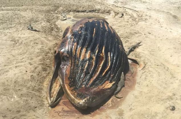 Kambur balina cesedinin etrafında toplanan timsahlar büyük bir ziyafet çekiyor.