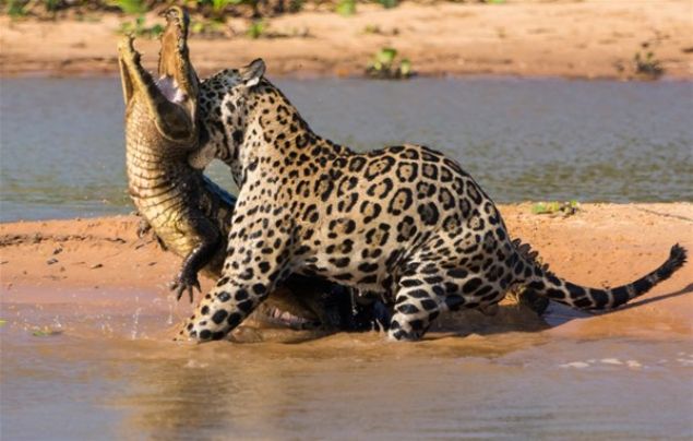 Timsah olacaklardan habersizken jaguar bir anda saldırıyor.
