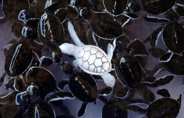 Albino karetta yavrusu.