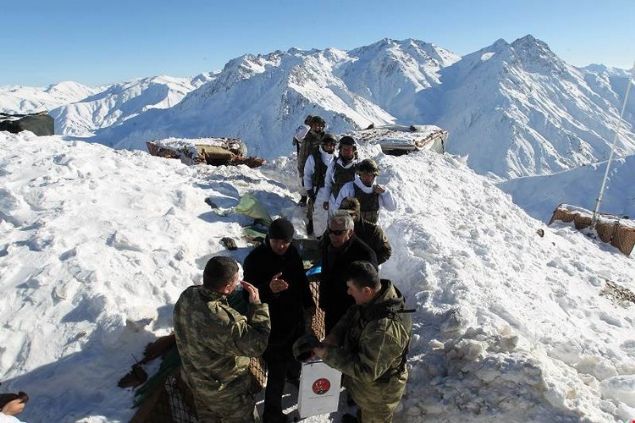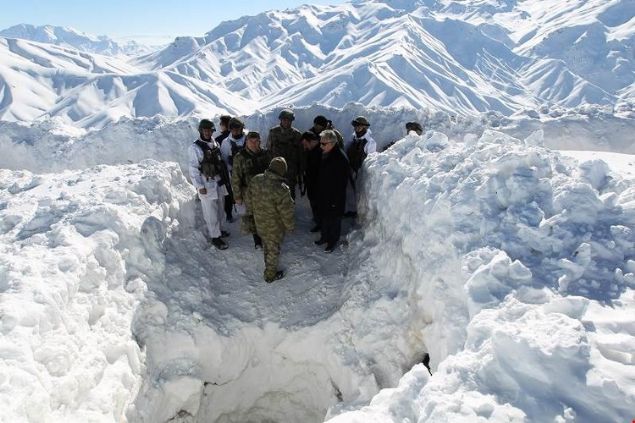 Hakkari Valisi Cüneyit Orhan Toprak, hava sıcaklığının sıfırın altında 35 dereceye kadar düştüğü Mirgesav Dağı'nda ve Gedik Tepe Üs bölgesinde nöbet tutan askerleri ziyaret ederek, kar altındaki mevzilerde nöbet tutan askerlerle bir süre sohbet etti.