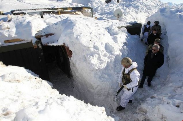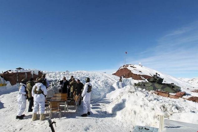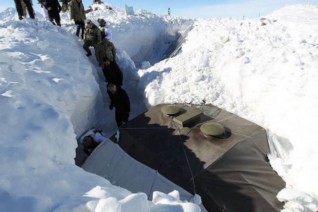 Kar kalınlığının yer yer 7 metreyi bulduğu üs bölgelerinde vatan savunması yapan askerler, 24 saat nöbet tutarak sınırdaki en ufak hareketliliği takip ediyor. Metrelerce yükseklikteki kardan tüneller açarak birbirine bağladığı mevzilerde ağır silahlarla görev yapan askerlerimiz, yine bu tünellerden geçerek dinlenme alanlarına ulaşıyor' dedi.